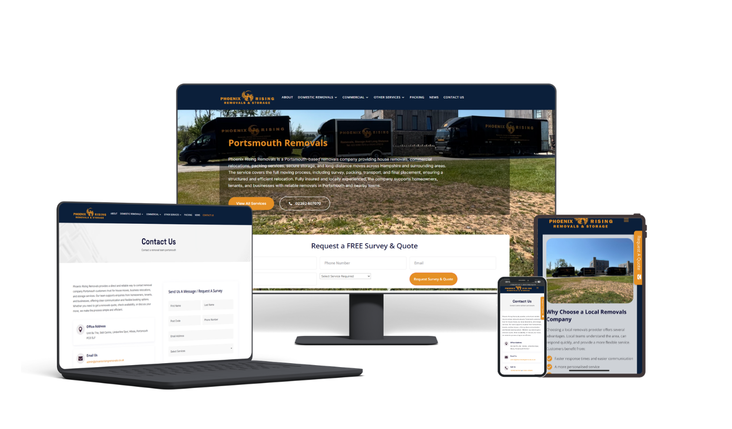 The removals industry in the Portsmouth and Chichester corridors is exceptionally competitive. Phoenix Rising Removals needed a digital platform that matched the professional scale of their physical operations. The primary challenge was replacing an outdated digital footprint with a high-performance WordPress site that could rank for competitive local keywords while providing a frictionless user experience for customers requesting quotes.