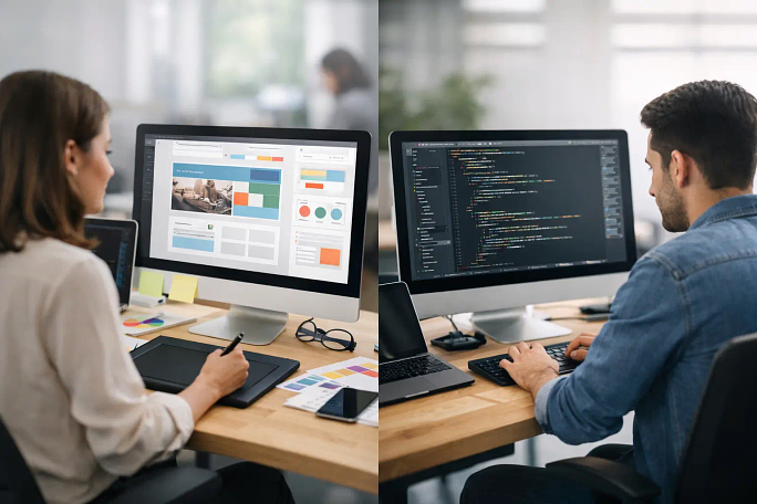 The simplest way to explain the difference between web design and development is this: web design focuses on user experience, brand presentation and conversion journeys, while web development focuses on building the website so those ideas function properly.